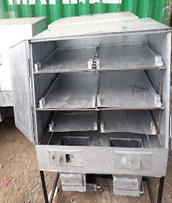 This is charcoal efficiency backing stove made by galvanized sheet with heat insulation layer and trays, can be used for products value additions like backing, grilling of various products.