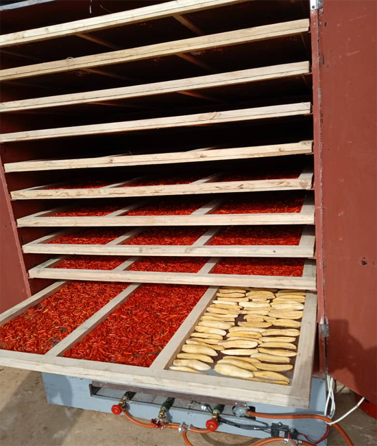 It is the tunnel type covered by Polycarbonate plastic sheet, and structure made by galvanized metals, the shelf can be stainless steel or framed net, it size depend on volumes of products to be dried at once.
