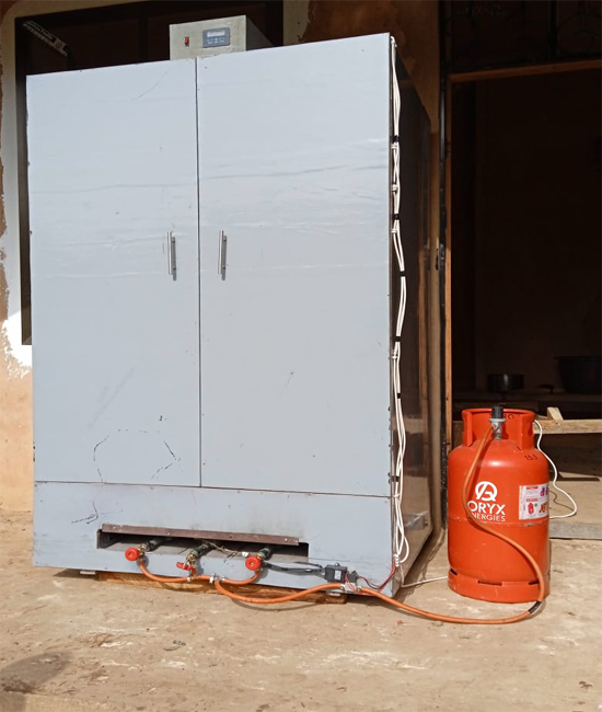 The combination of both Photovoltaic solar energy and gas heating energy increases the efficiency and drying time even on the day with no direct sunshine Electricity used to generate power to run Circulating Fans and Digital displays for temperatures in the drying chamber is stepped down from 240 volts to Direct Current system used on vehicles of 12 Volts and 24 Volts, using very minimum electricity during running machine.