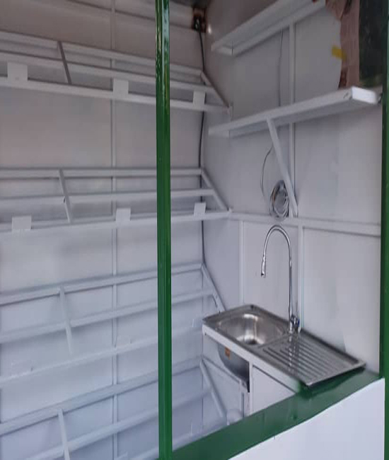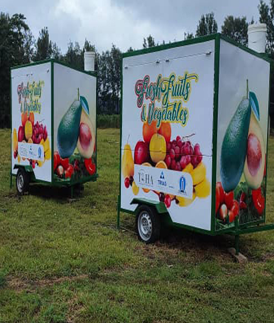 It is the modern and classic designed mobile fruits cart with 20 display trays, draining water system solar powered lights and also can be connected to the grid electricity, it is used to showcase fruits, herbs, spices and fresh juice to the consumers, and can be easily transferred to the big events, exhibitions, concerts or any location around the city.